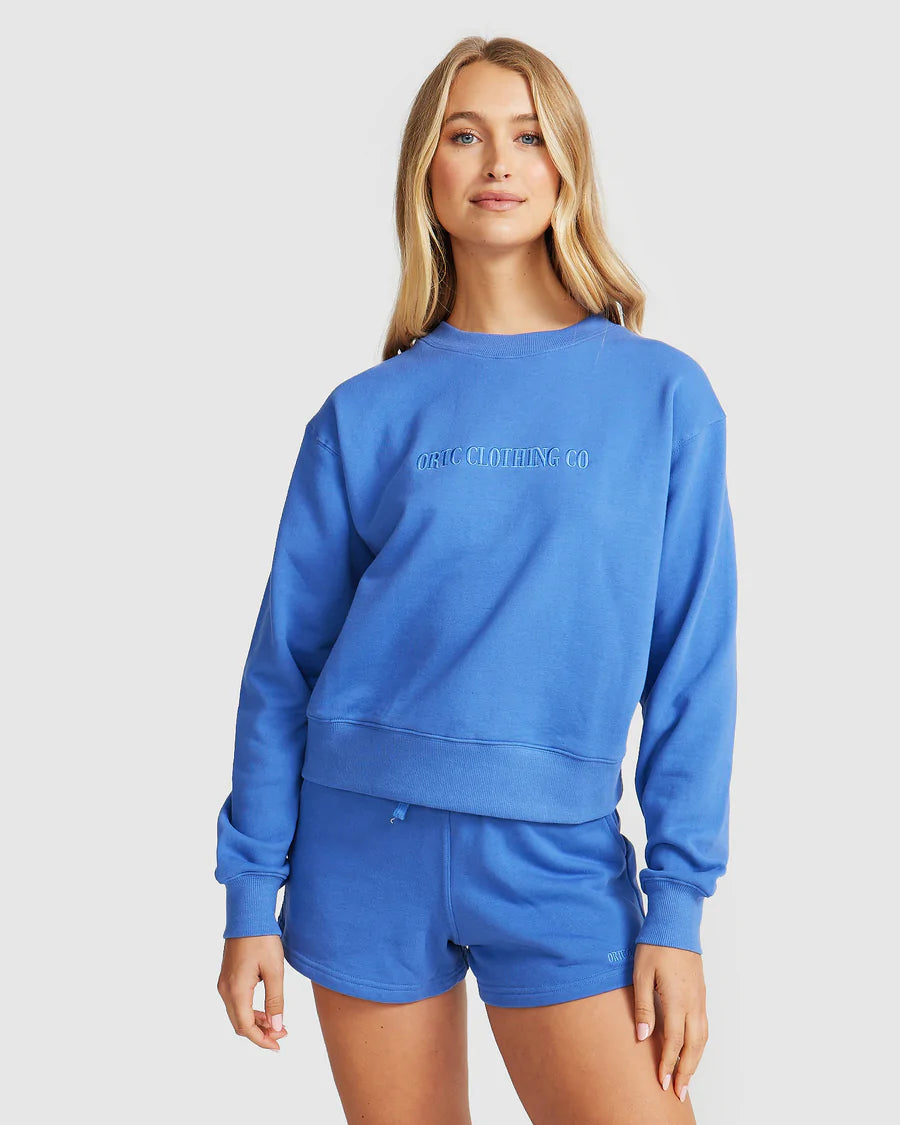 Grab the Womens Lounge Short in Blue to go with your Classic Logo Crew. Super cute with summer slides.